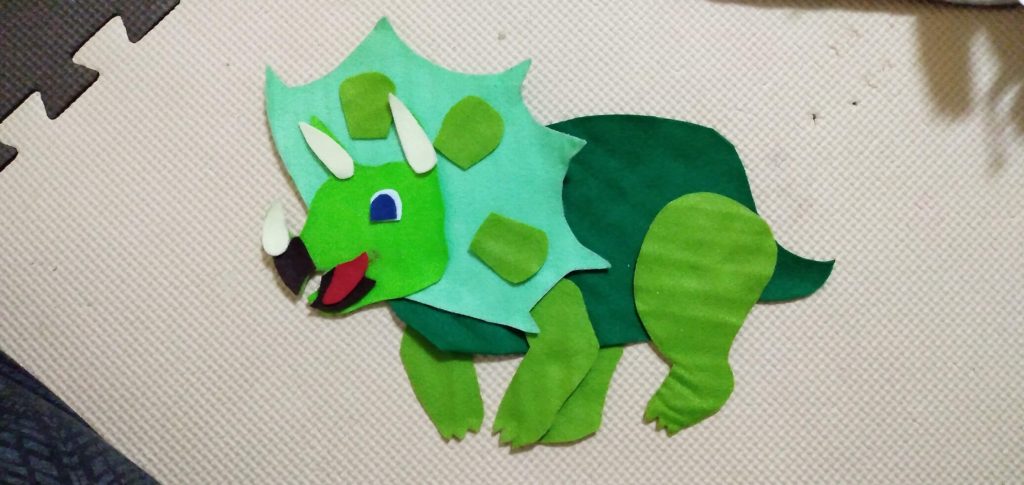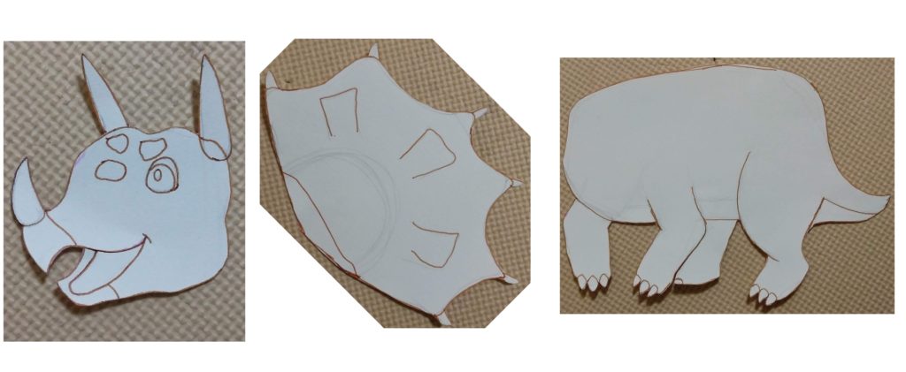 まずは画用紙で型紙を作りました。こちらはトリケラトプス。