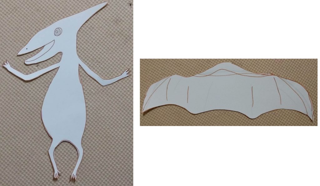こちらはプテラノドンの型紙。下書きの線が残っててすみません(^_^;)