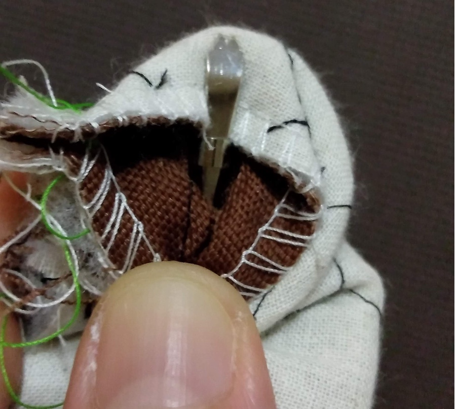 紐通しを反対側から引っ張り出したところです。