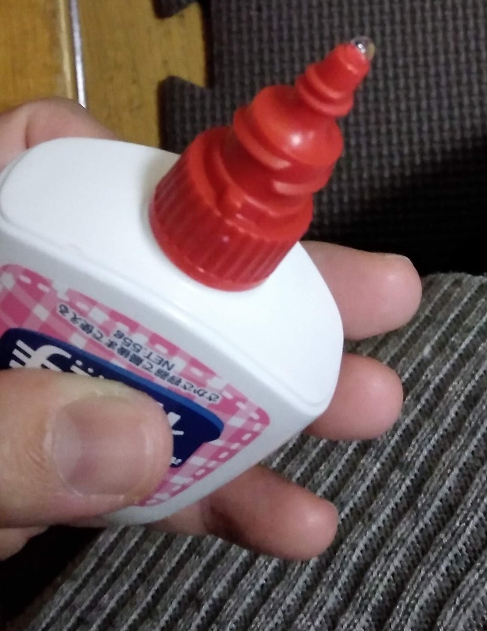 ということで便利アイテムの紹介です。今回ミシンで縫いましたが、アップリケをつける時は、布用のボンドが便利です。実際に私が使っているのはこれです。コニシの「布上手」。
