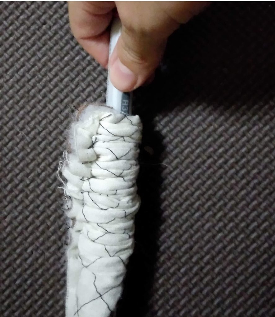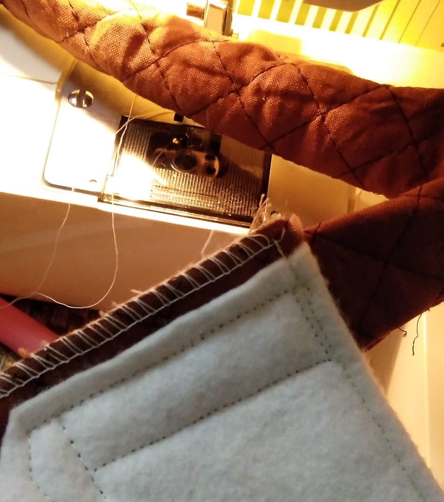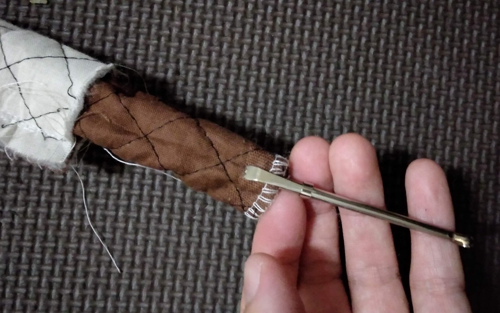 キルトが分厚く、引っ張るだけではなかなか進まないので、ペンなどでも押し込みます。