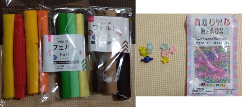 実際にフェルトを切り抜いて、並べるとこのような感じになります。