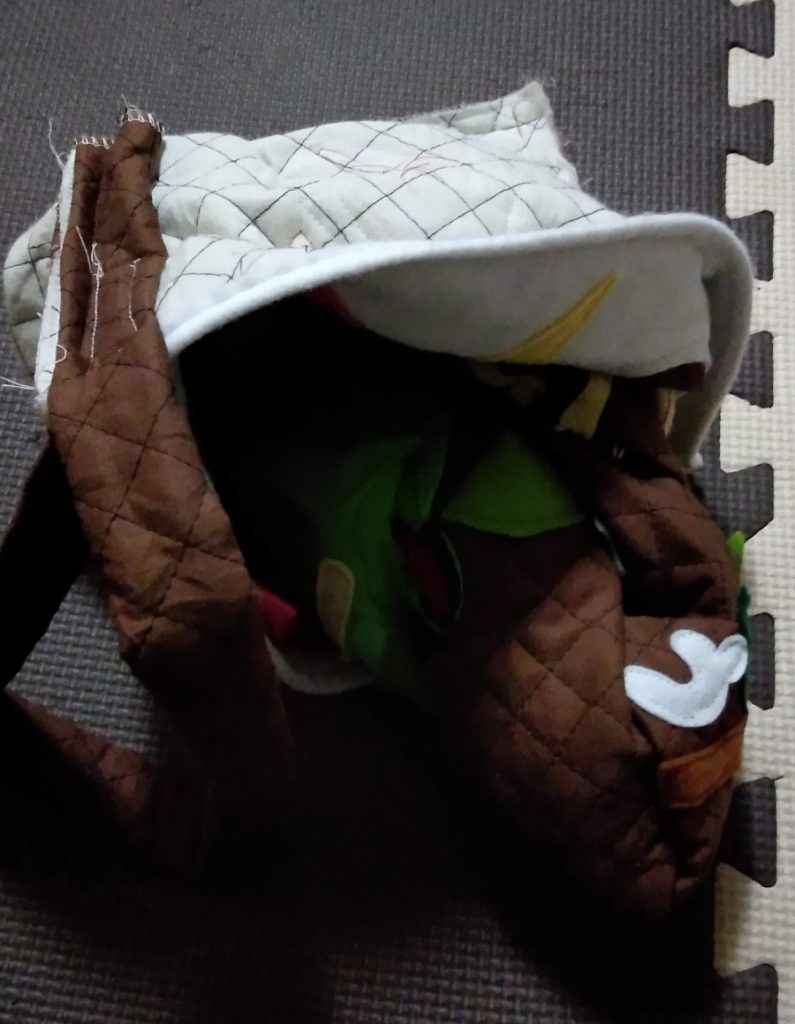 縫い終わったら、ひっくり返して出来上がりです。